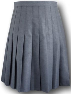 Skirt with sewn-down all-around wide knife pleats, back zip and button fastening.